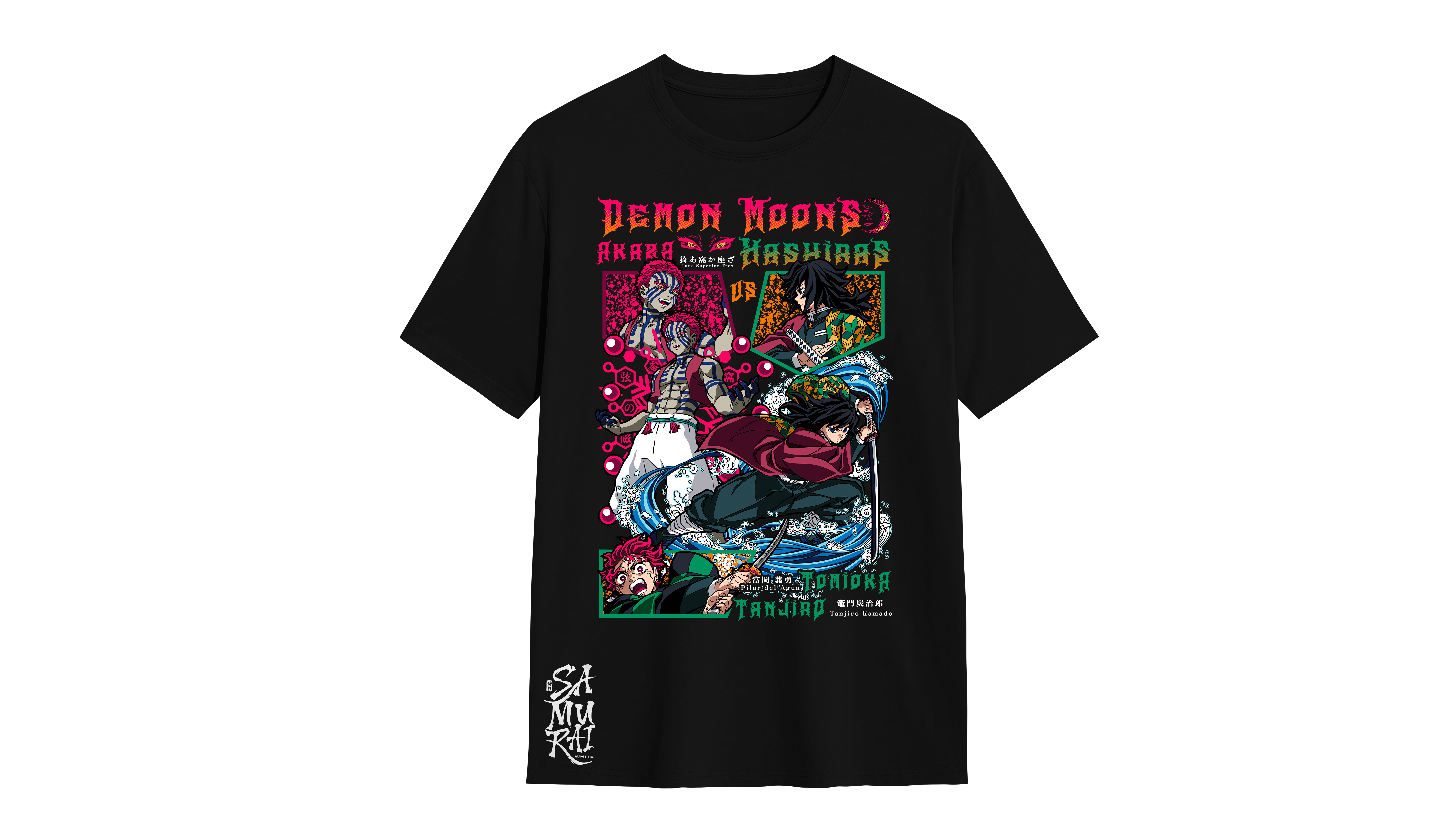 Camiseta de Akaza Vs Giyu y Tanjiro- Demon Slayer: Kimetsu no Yaiba | Samurai white