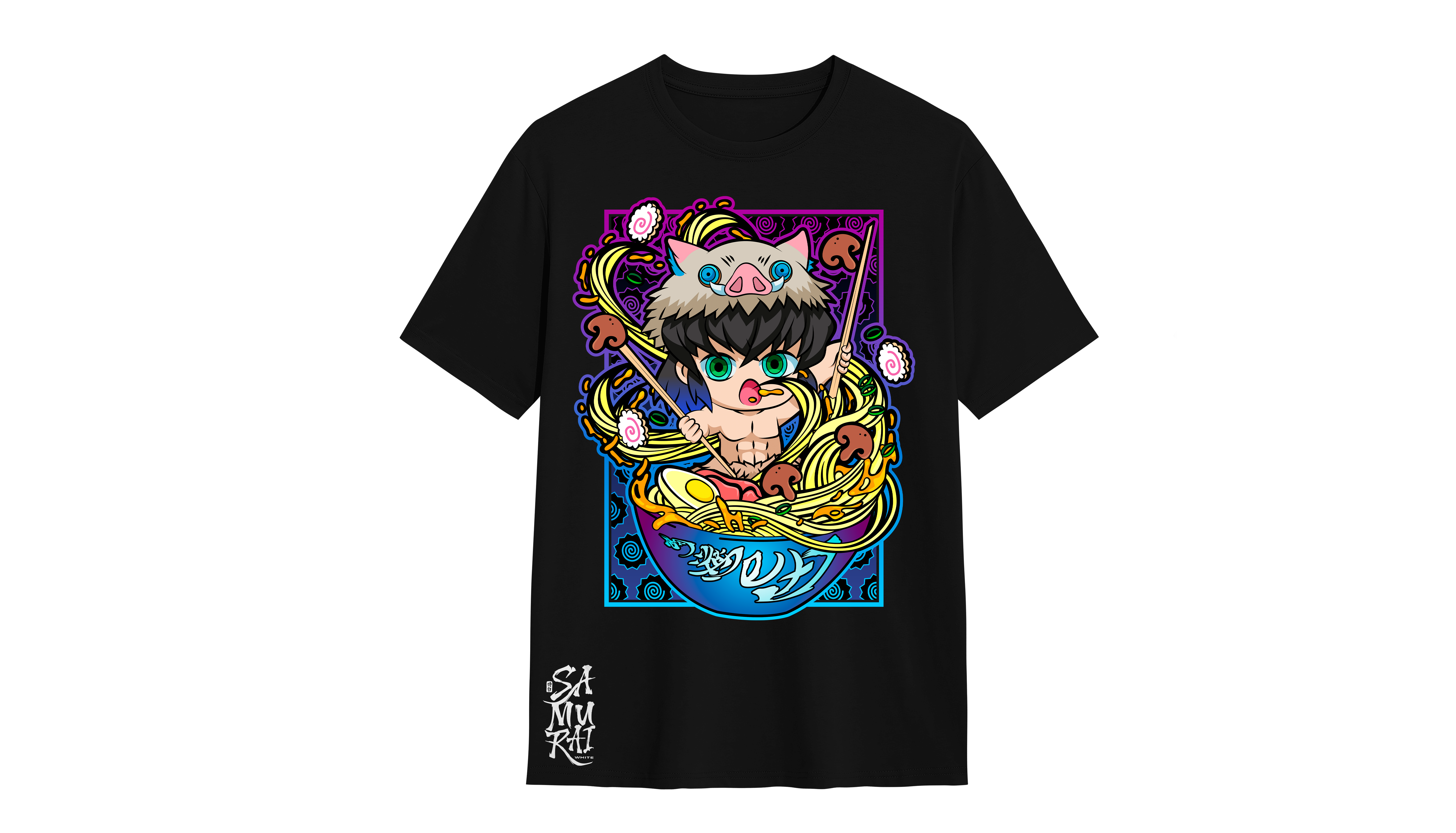 Camiseta de Inosuke Chibi- Demon Slayer: Kimetsu no Yaiba | Samurai white