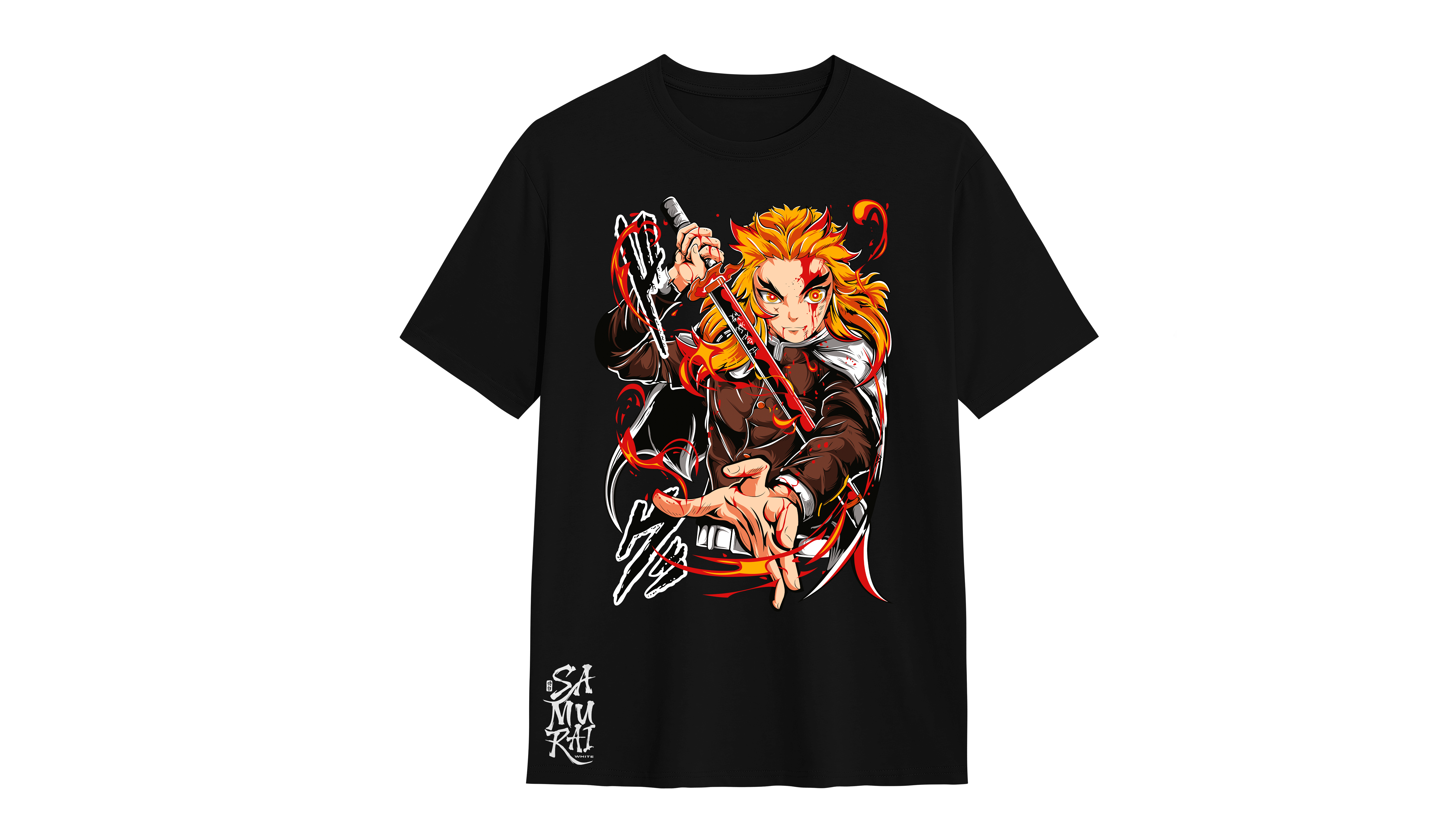 Camiseta de Kyojuro Rengoku- Demon Slayer: Kimetsu no Yaiba | Samurai white