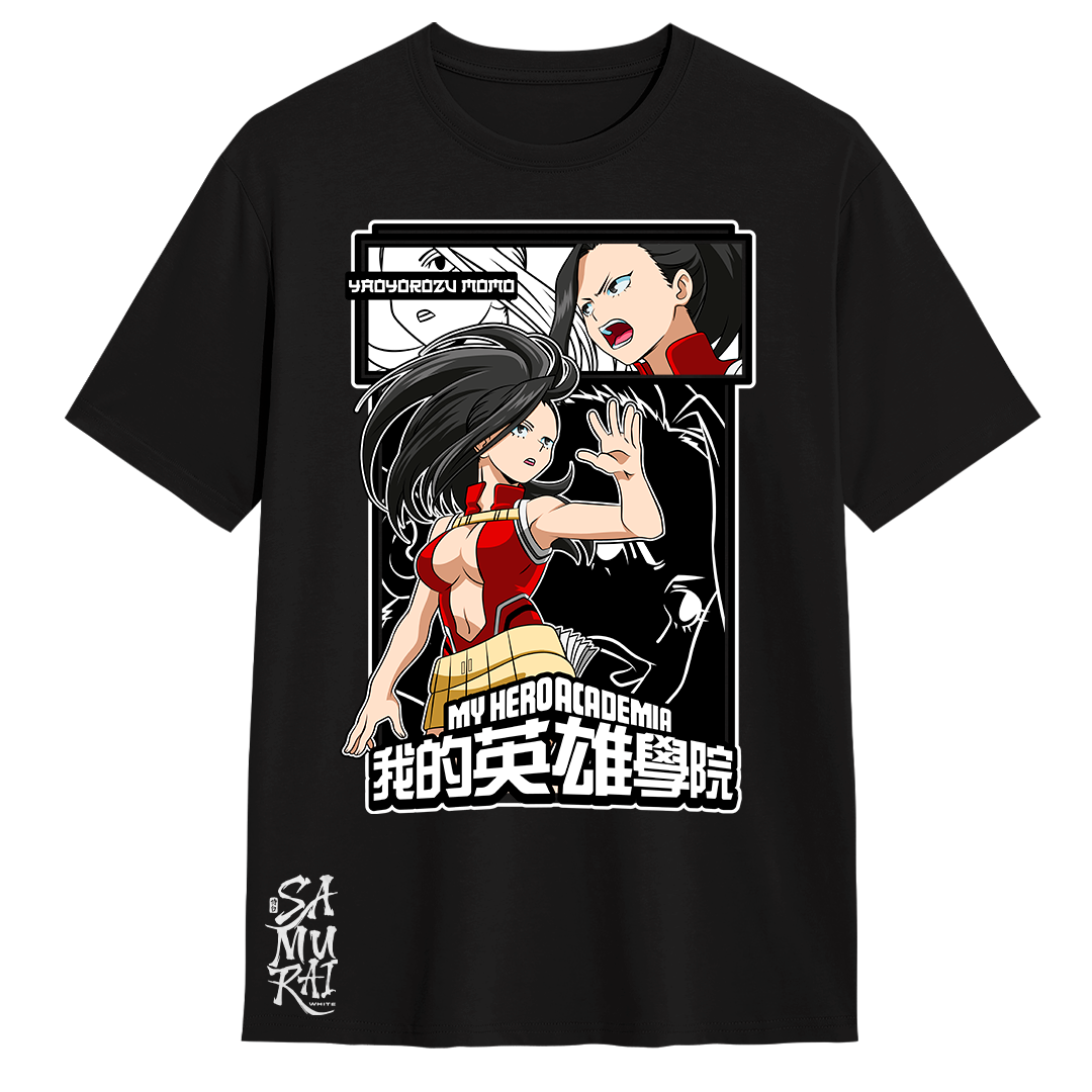 📘 La camiseta de Momo Yaoyorozu de Boku no Hero Academia representa inteligencia, elegancia y poder estratégico. Inspirada en la heroína Creation, este diseño transmite liderazgo y confianza, ideal para fans que valoran la mente tanto como la fuerza dentro del universo héroe.